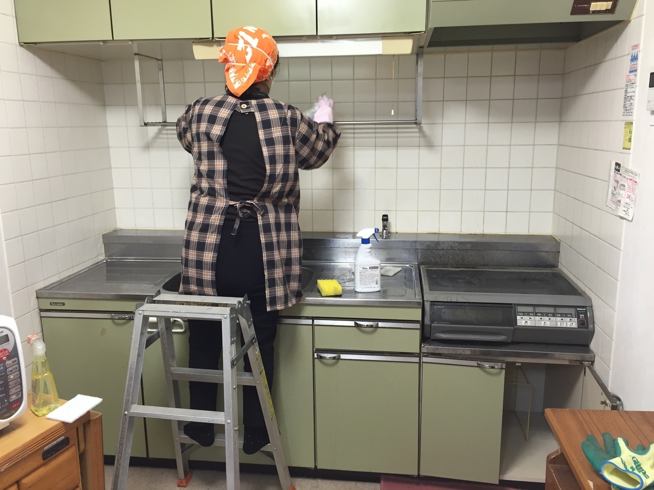 自分では、なかなか掃除しきれない換気扇の中や排水溝などの頑固なこびりつき汚れは、硬めの歯ブラシを使用したりと女性陣は日々あれこれ工夫しています。掃除のしづらい天井など高い所や家具・家電の裏なども男性スタッフの力も借りてキレイにします。